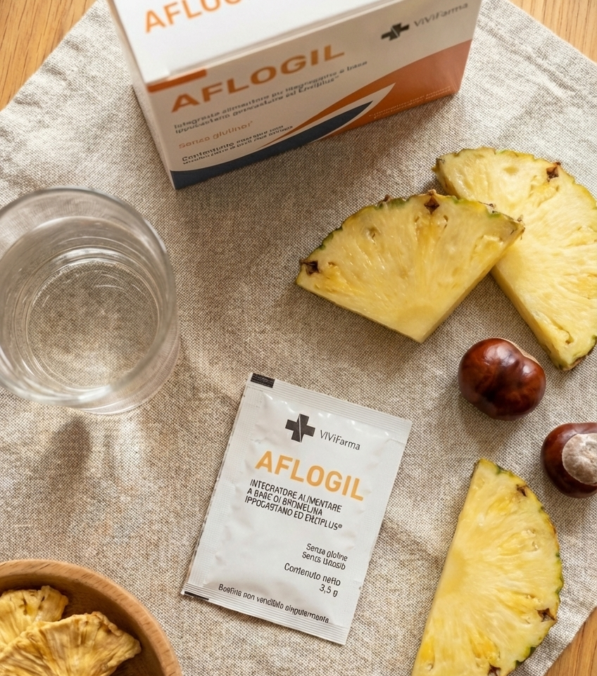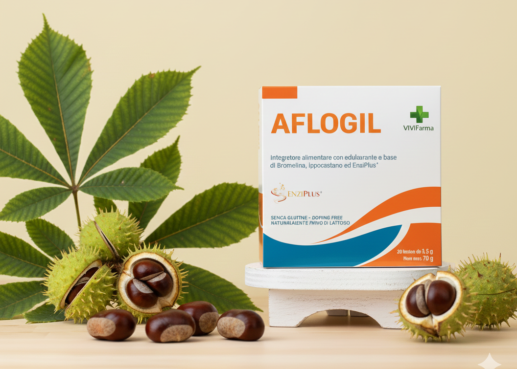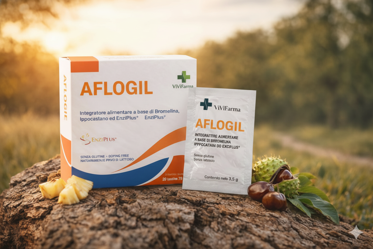 Aflogil è un integratore alimentare a base di bromelina, ippocastano ed Enziplus, utile per favorire il microcircolo e il drenaggio dei liquidi corporei.